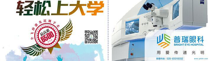 安全治近视 轻松上大学全飞秒激光钜惠6000元 学生惠6500元(17-35岁)